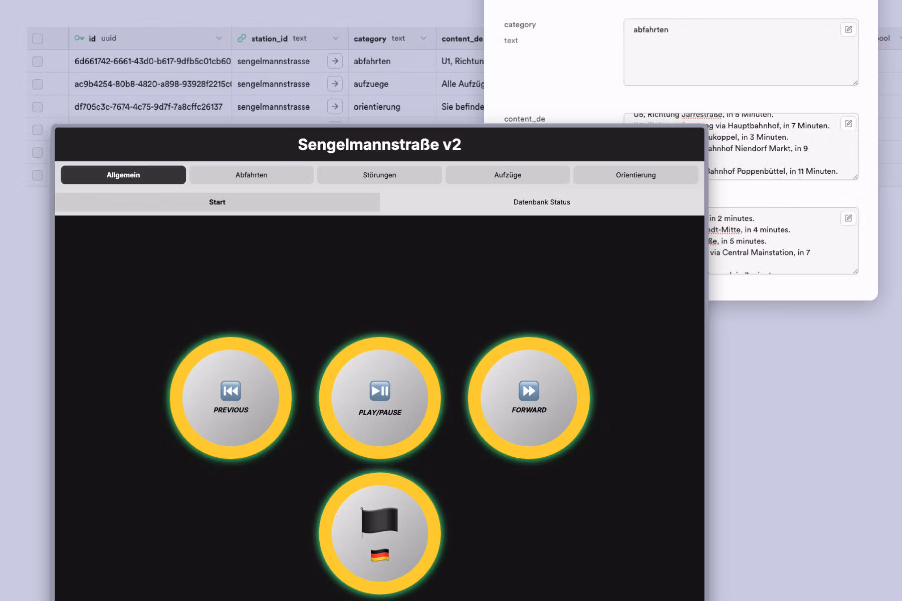 Next, we moved into Vercel v0 to refine content questions — length, tone, multi language support and required sounds — so we could validate what the audio experience should feel like across different station types and locations along the journey.